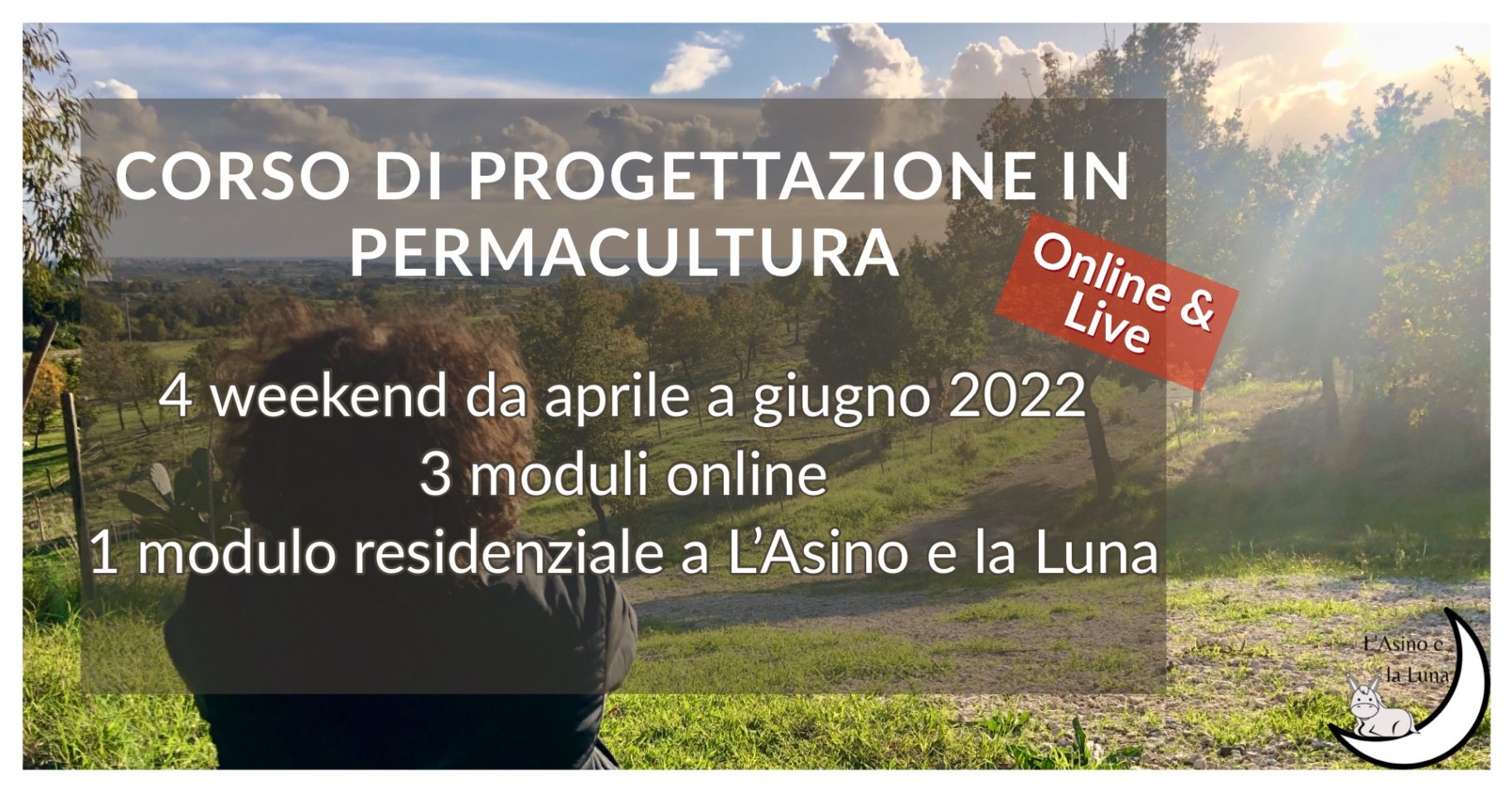 Vista la situazione generale, i divieti di assembramento e i limiti di movimento tra le regioni con cui ancora dovremo convivere probabilmente per qualche mese, abbiamo pensato ad un corso composto da 3 moduli on line e uno (l’ultimo) residenziale. Ogni modulo è di 3 giorni, i primi 3 saranno on line sulla piattaforma zoom e l’ultimo si svolgerà dal vivo per la progettazione finale a L’Asino e la Luna.