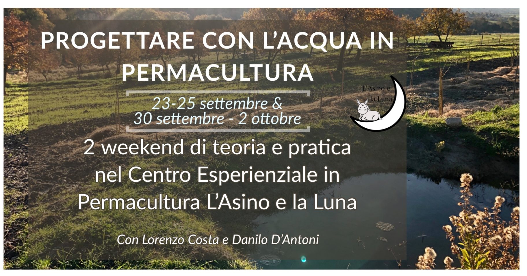 Un corso di 6 giorni diviso in 2 fine settimana dove affronteremo la tematica della gestione dell’acqua in permacultura in tutte le sue forme. La progettazione dell’acqua in qualsiasi sistema è di fondamentale importanza e non può mai essere trascurata se si vuole progettare in modo efficace, soprattutto in un contesto agricolo. Lo faremo nel Centro Esperienziale L’Asino e la Luna dove è presente un sistema di canali e stagni già in funzione da 3 anni che andremo ad implementare con la creazione di altre strutture nel corso del secondo weekend.